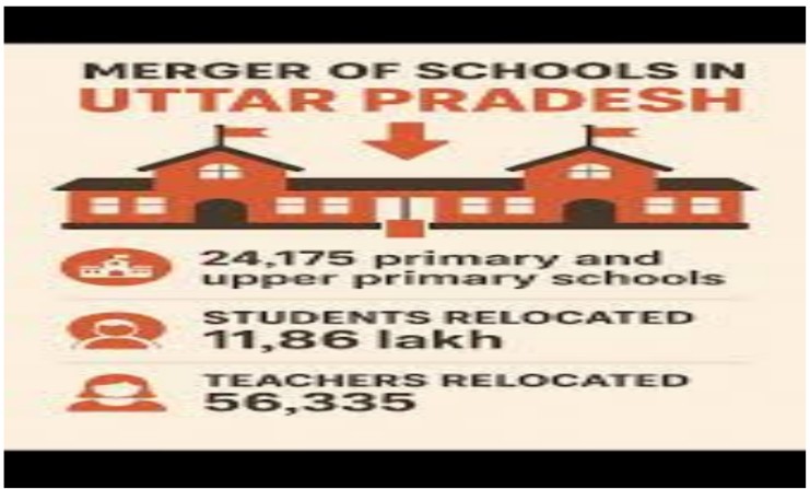 • The Uttar Pradesh government’s 2025 decision to merge government schools with low enrolment has sparked widespread debate.