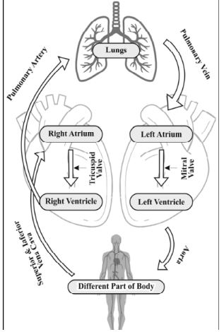 • Oxygenated Blood: From lungs → left atrium → left ventricle → body.
