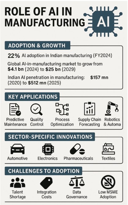 • Low MSME Adoption: Only about 15% of SMEs currently use AI in manufacturing.