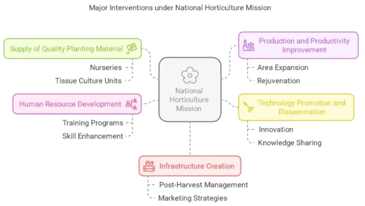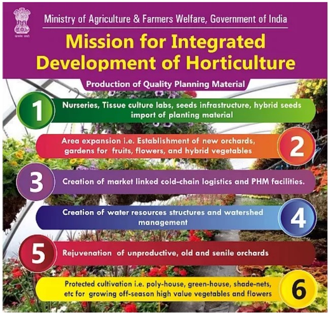 The National Horticulture Mission is a central undertaking that pays a significant dollar on the comprehensive development of horticulture in India. Below are some salient features of the mission: