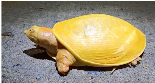 - Recently, a rare albino Indian flapshell turtle, distinguished by its bright yellow shell and skin, was spotted in a freshwater lake at Chikodra village, Gujarat.