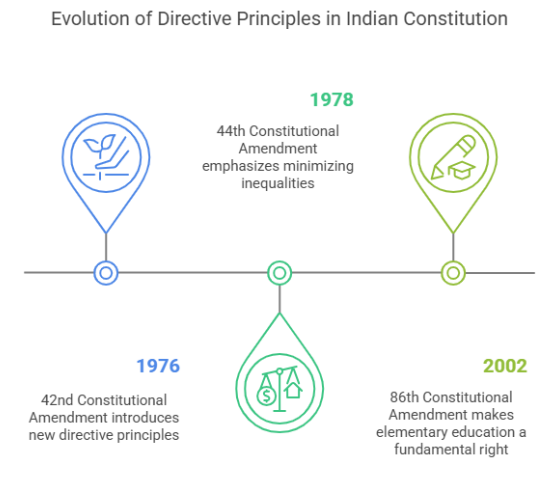 Over the years, DPSPs have been modified through constitutional amendments to address evolving socio-economic needs.