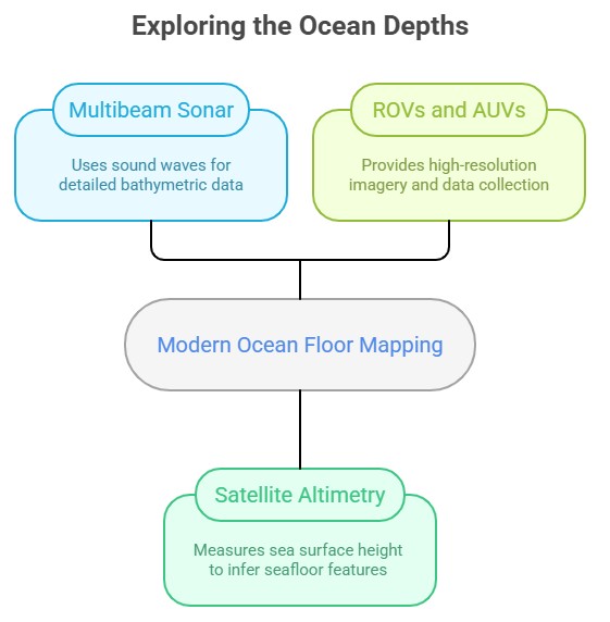 Mapping of the ocean floor, also known as bathymetry, is a crucial process for understanding the topography, geological features, and ecosystems of the Earth's oceans.