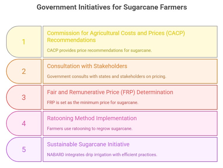 - Sustainable sugarcane initiative: It is an innovative credit-plus approach of NABARD, which helps integrate the twin drip irrigation system with resource-efficient sugarcane agricultural practices.