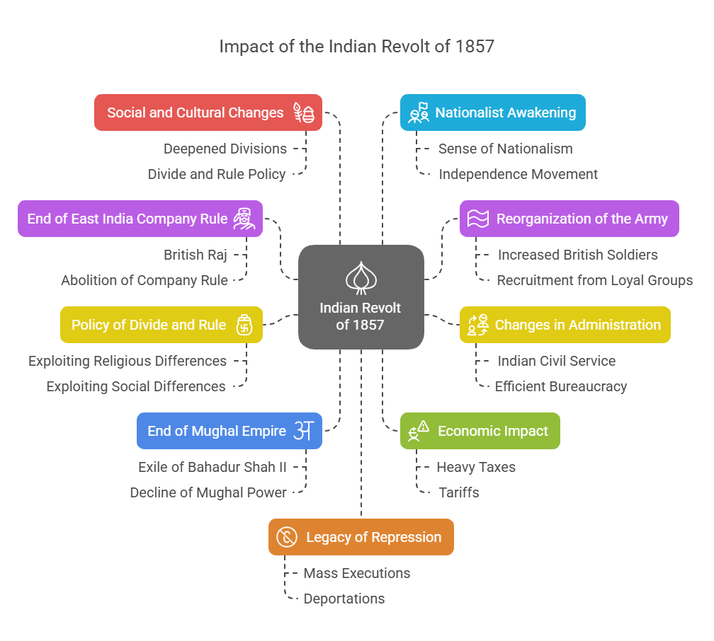 The Revolt of 1857 was a turning point in the colonial history of India that brought about critical political, military, and economic transformations. The rebellion may have been suppressed, but the Consequences of Revolt of 1857 heavily influenced British rule in India and planted the seeds of rebellion to come.