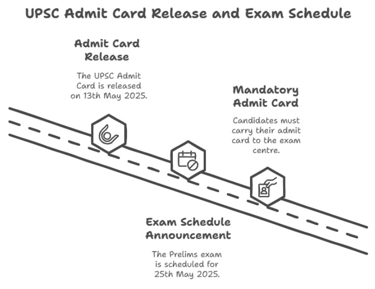The UPSC Admit Card 2025 for the Preliminary examination was released on 13th May 2025 on the official UPSC website — upsc.gov.in. The Prelims exam is scheduled for 25th May 2025, and it is mandatory for all registered candidates to carry their UPSC Admit Card to the exam centre.