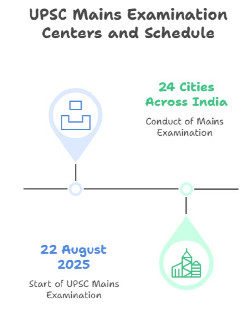 UPSC has designated 24 cities across India to conduct the Mains examination—from 22 August 2025 onward. The official list includes: