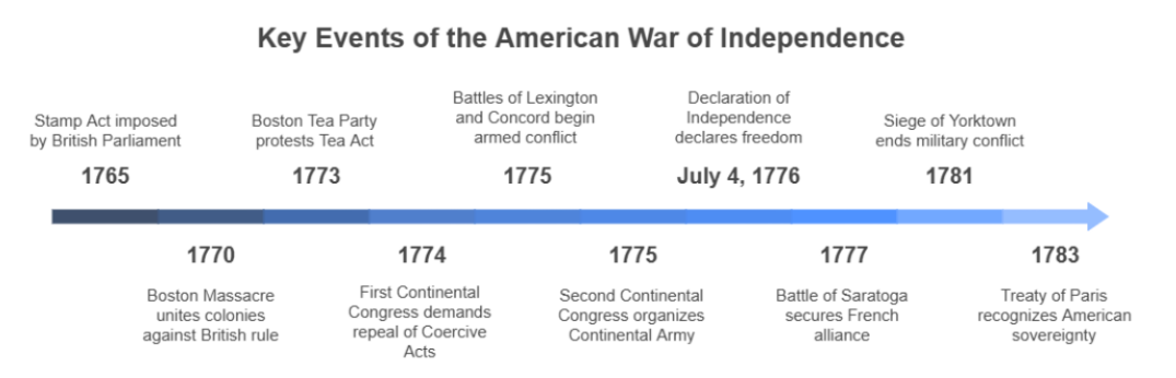 The American War Of Independence (1765–1783) was a landmark event in world history. It marked the thirteen British colonies' successful fight for freedom and led to the birth of the United States of America. This revolution was driven by deep-rooted grievances, Enlightenment ideals, and a desire for self-rule. It not only transformed America but also inspired movements across the globe.