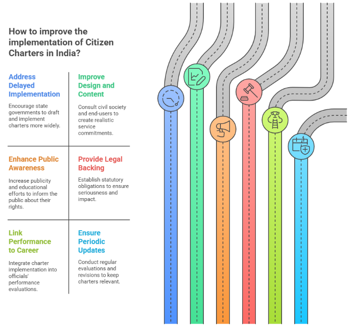 A well-structured Citizen Charter can revolutionize public service delivery in India. However, without legal support, proper awareness, and accountability, the Citizen Charter risks being just another bureaucratic formality. With the right reforms and citizen involvement, Citizen Charter can bridge the gap between citizens and the government, ensuring efficient, transparent, and responsive governance.