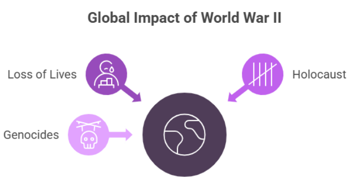 The most tragic Impact Of World War II was the unprecedented loss of human life. Estimates suggest that 70 to 85 million people died during the war, including soldiers, civilians, and victims of bombings, massacres, and famine. The Holocaust alone led to the systematic murder of six million Jews by the Nazi regime. Entire cities were destroyed, and families across the globe were left devastated.
