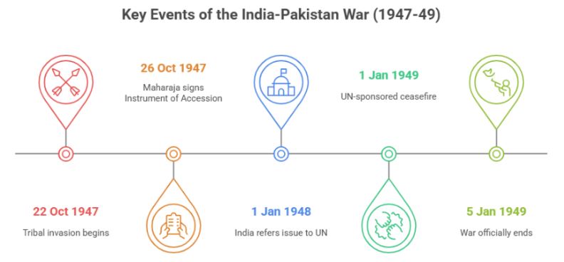 Explore the full history of the India‑Pakistan War (1947–48), including its causes, tribal invasion, UN ceasefire, and the formation of the Line of Control.