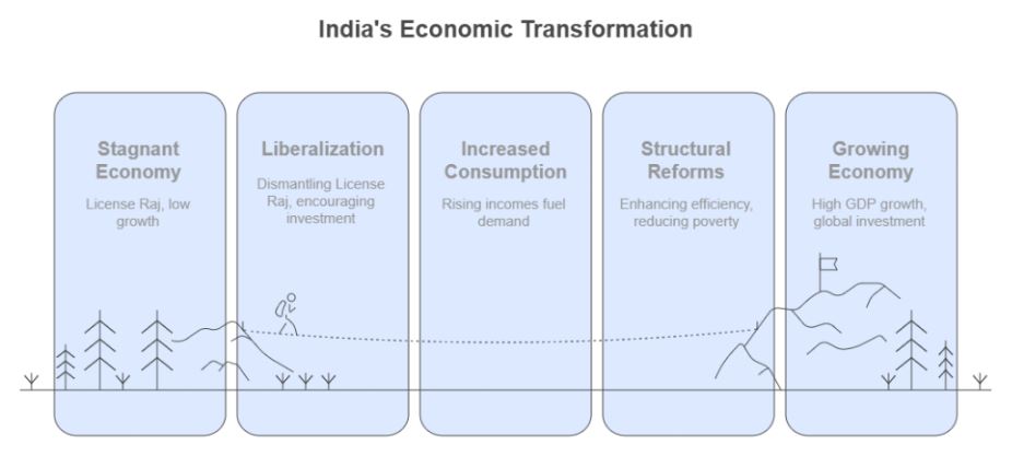 Domestic consumption remains a critical pillar of economic growth. Rising middle-class incomes, urbanization, and consumer demand have played a central role in shaping the Indian Economy Since 1991. Coupled with increased investor confidence, India has become a key destination for global investors.
