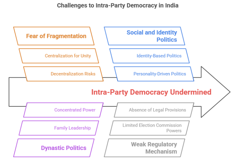 Despite its benefits, intra-party democracy faces several challenges in India, including: