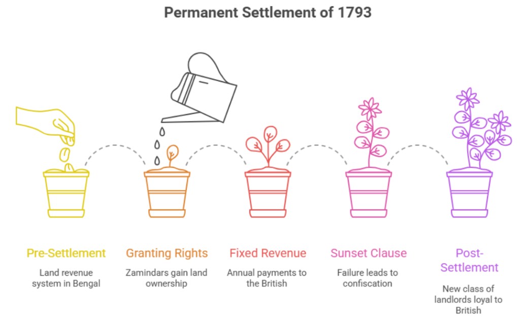 Learn about the land revenue settlements in British India — Permanent, Ryotwari, and Mahalwari — their features, benefits, issues, and lasting impacts.