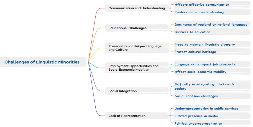 Linguistic minorities often lack political or educational representation in state-level institutions where the official language differs from their own.