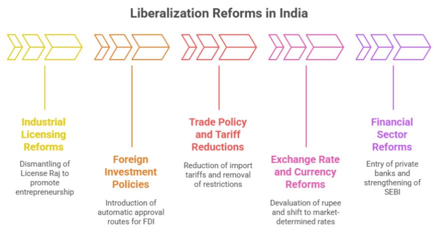 The LPG reforms in India not only rescued the economy from collapse but also laid the foundation for long-term growth, foreign investment, and modernization. Let’s explore each pillar of these reforms and their wide-ranging impact on the Indian economy.