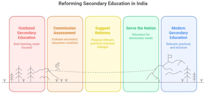 Explore how the Mudaliyar Commission (1952) shaped India’s secondary education system with its visionary recommendations on structure, training, and pedagogy.