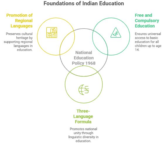 The National Education Policy 1968 introduced the three-language formula to promote national unity and linguistic diversity:
