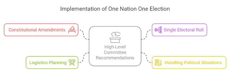 A High-Level Committee (HLC), led by Ram Nath Kovind, proposed key measures for implementing One Nation One Election through constitutional amendments.