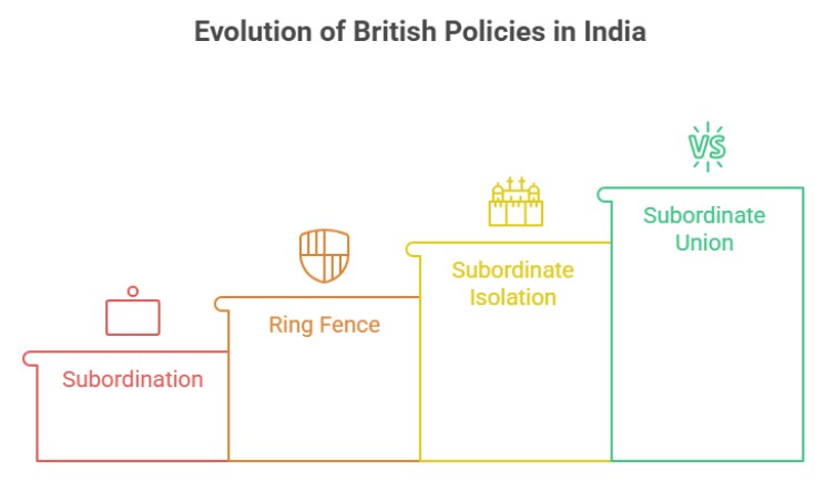 The princely states in India did not exist in isolation but were deeply tied to the larger colonial strategy of control. The British adopted several phases of policy towards them, ranging from subordination to union under the Crown.
