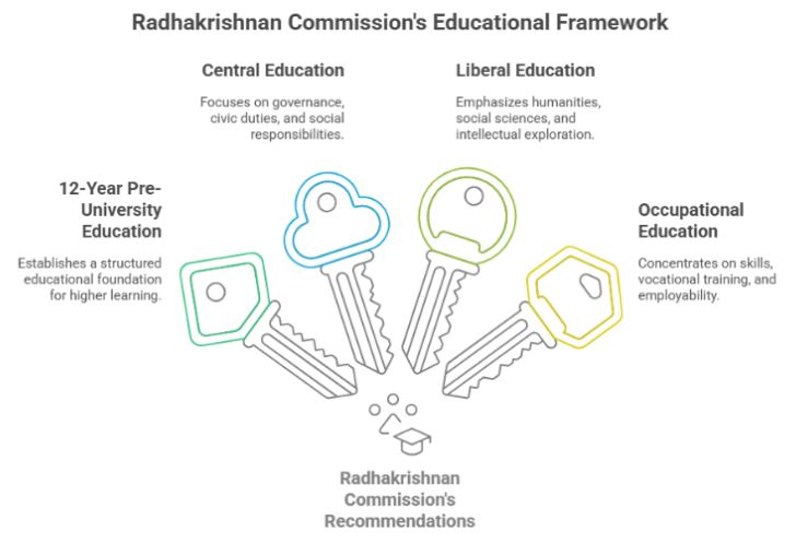 The Radhakrishnan Commission advocated for a multilingual education model, respecting India’s linguistic diversity while ensuring academic competitiveness.
