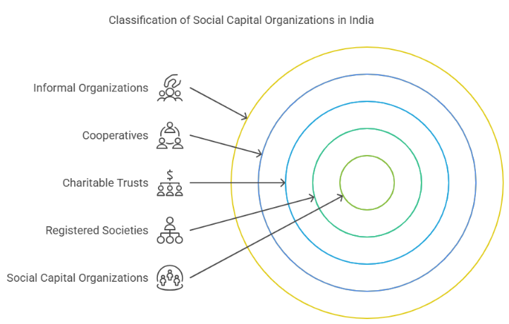 According to the Second Administrative Reforms Commission (2nd ARC), Social Capital Organizations in India can be classified based on their legal status and the nature of their activities: