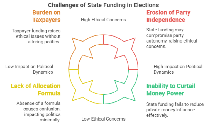 Despite the benefits, the State Funding of Elections might not be sufficient to entirely eliminate private contributions and misuse of money power. Without a robust mechanism to monitor party expenditure and restrict private donations, state funding alone cannot solve all the issues related to money in politics.