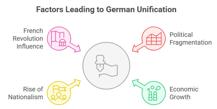 The Unification of Germany was shaped largely by the rivalry between Austria and Prussia, both vying for dominance within the German Confederation. Austria’s conservative policies clashed with Prussia’s reform-oriented and militaristic ambitions.