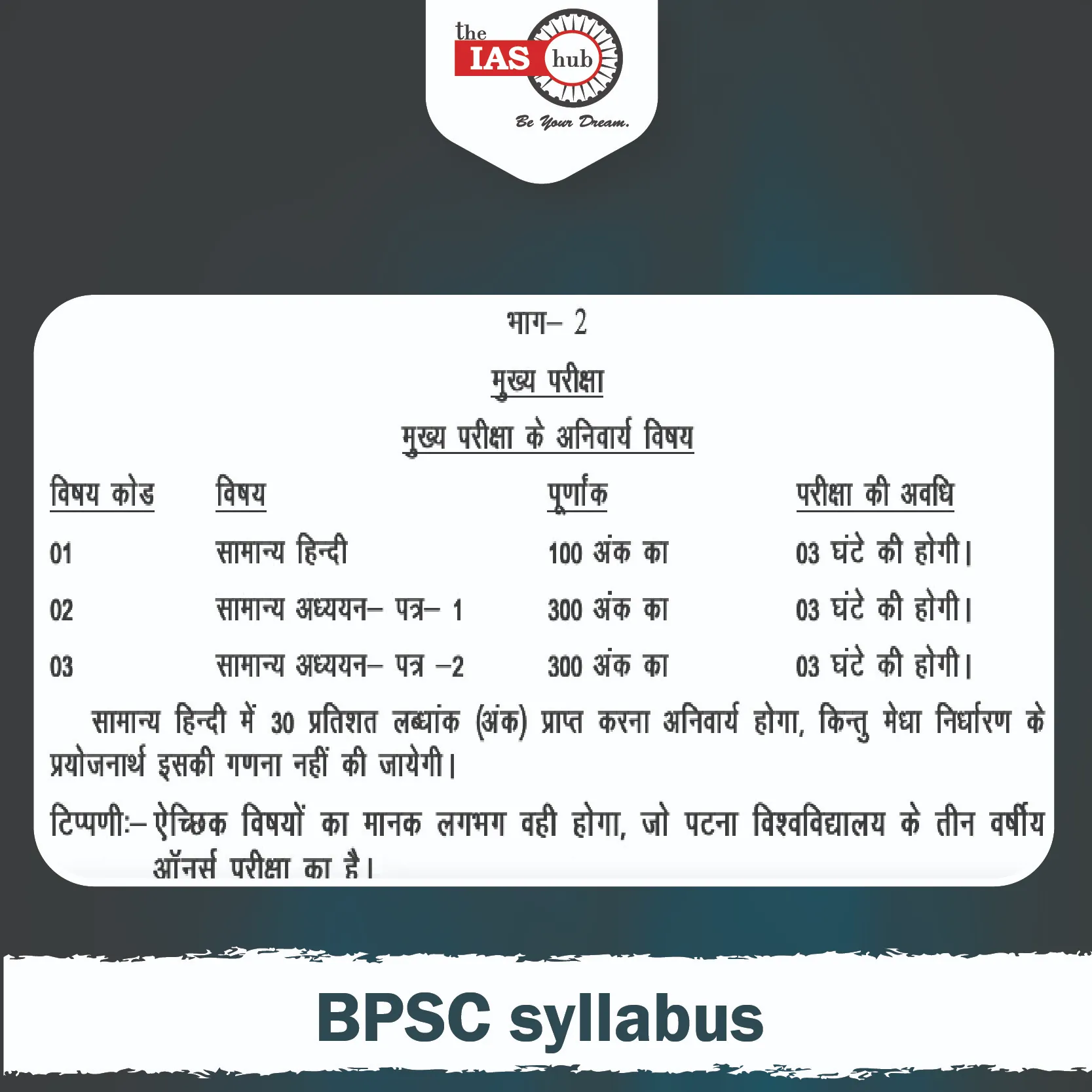 Here’s a crisp BPSC Syllabus 2025 with for BPSC Exam Pattern 2025: