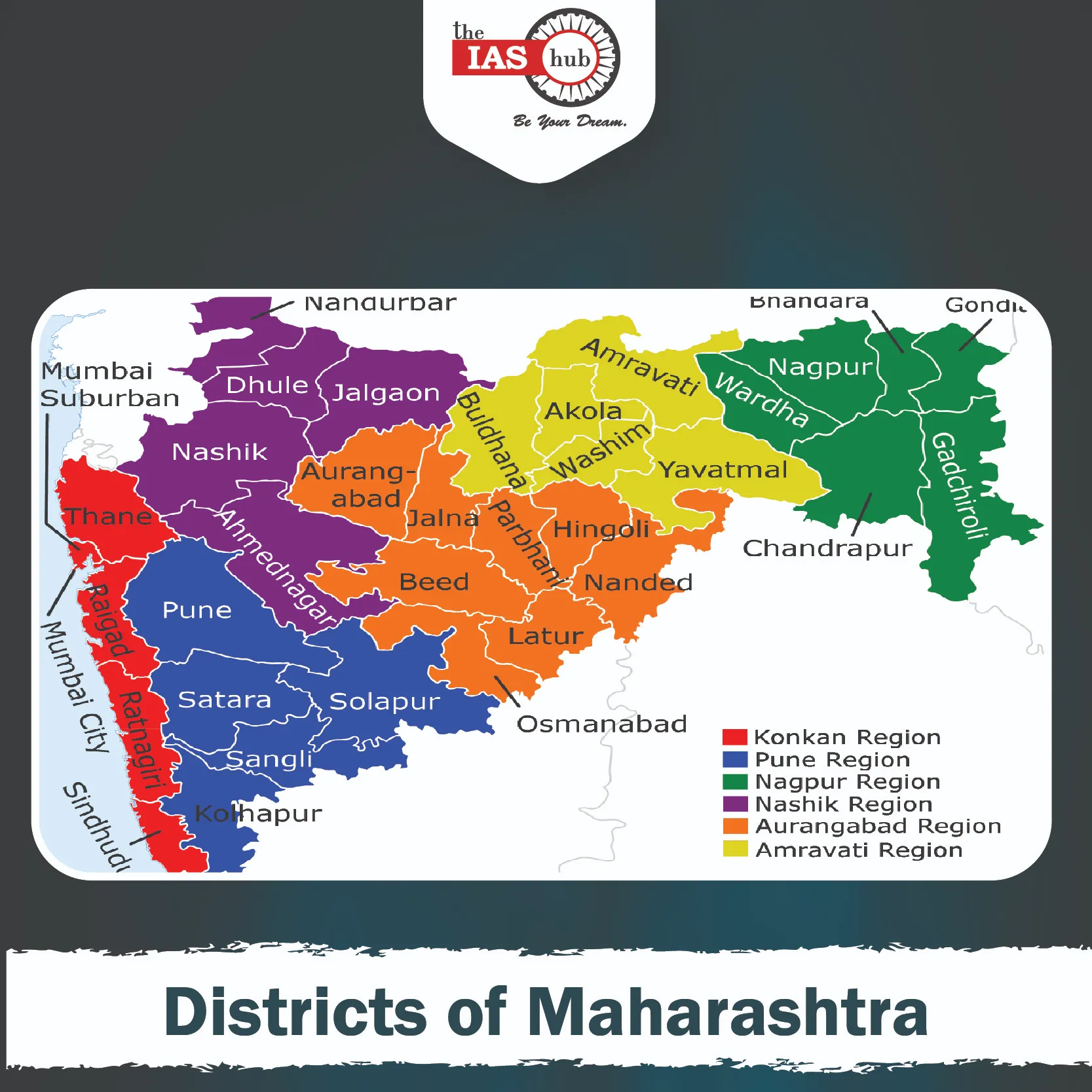 | Konkan Division | Mumbai City, Mumbai Suburban, Thane, Palghar, Raigad, Ratnagiri, Sindhudurg |